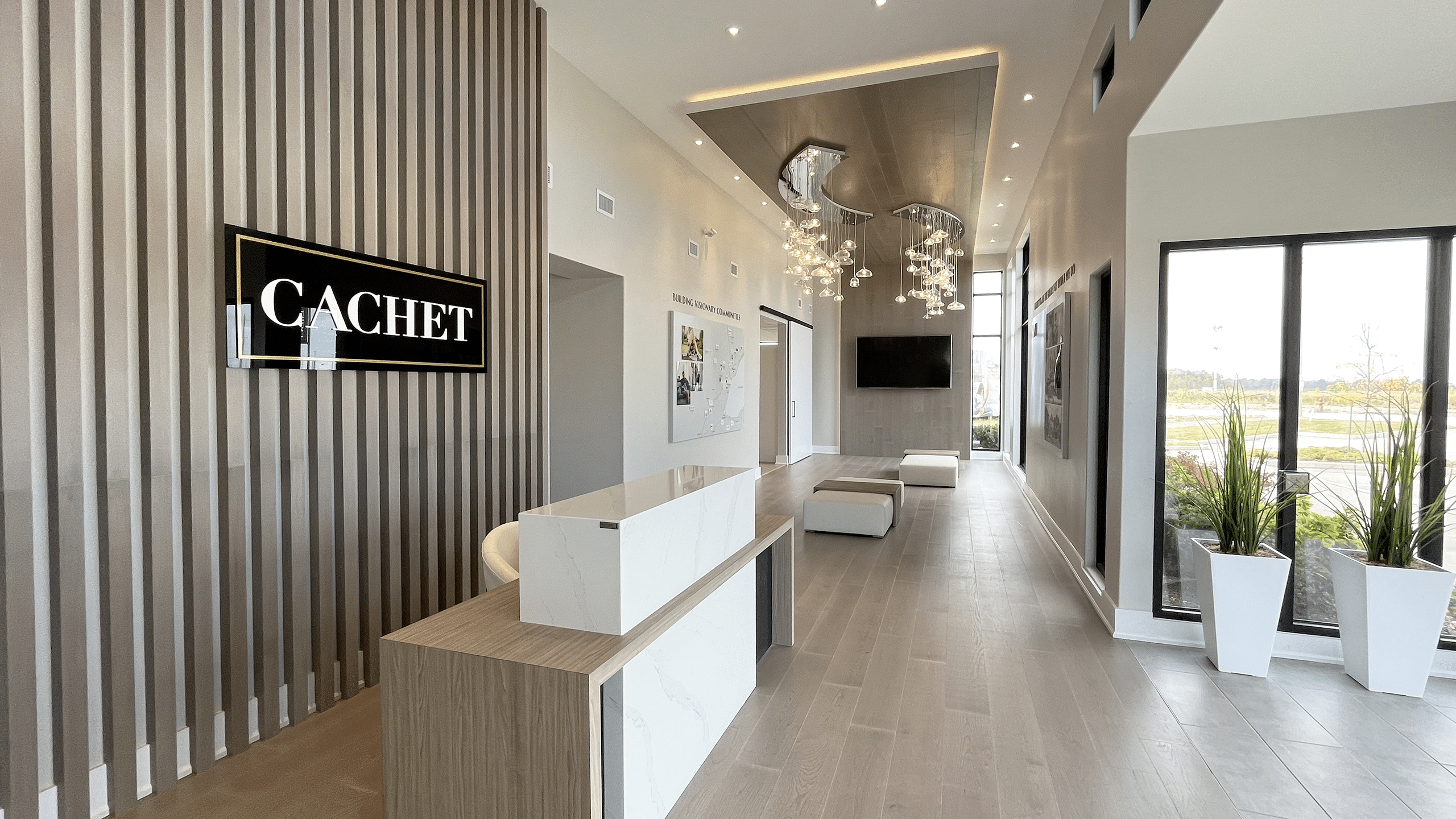 As Cachet continues to grow, 2023 was the perfect opportunity for us to turn our attention toward improving our Presentation Centres. This year, we transformed our existing Presentation Centres in Hamilton and Cambridge into Cachet New Home Centres to improve the experience for our prospective and existing homeowners. Each space was renovated to combine our sales centres and design studios into centralized locations. “We needed to adapt to the scale of the communities we are building, which in turn meant we needed to expand our sales and studio workspaces and design offerings,” says Kimberly Bianchi, Cachet’s Director of Design Studio.