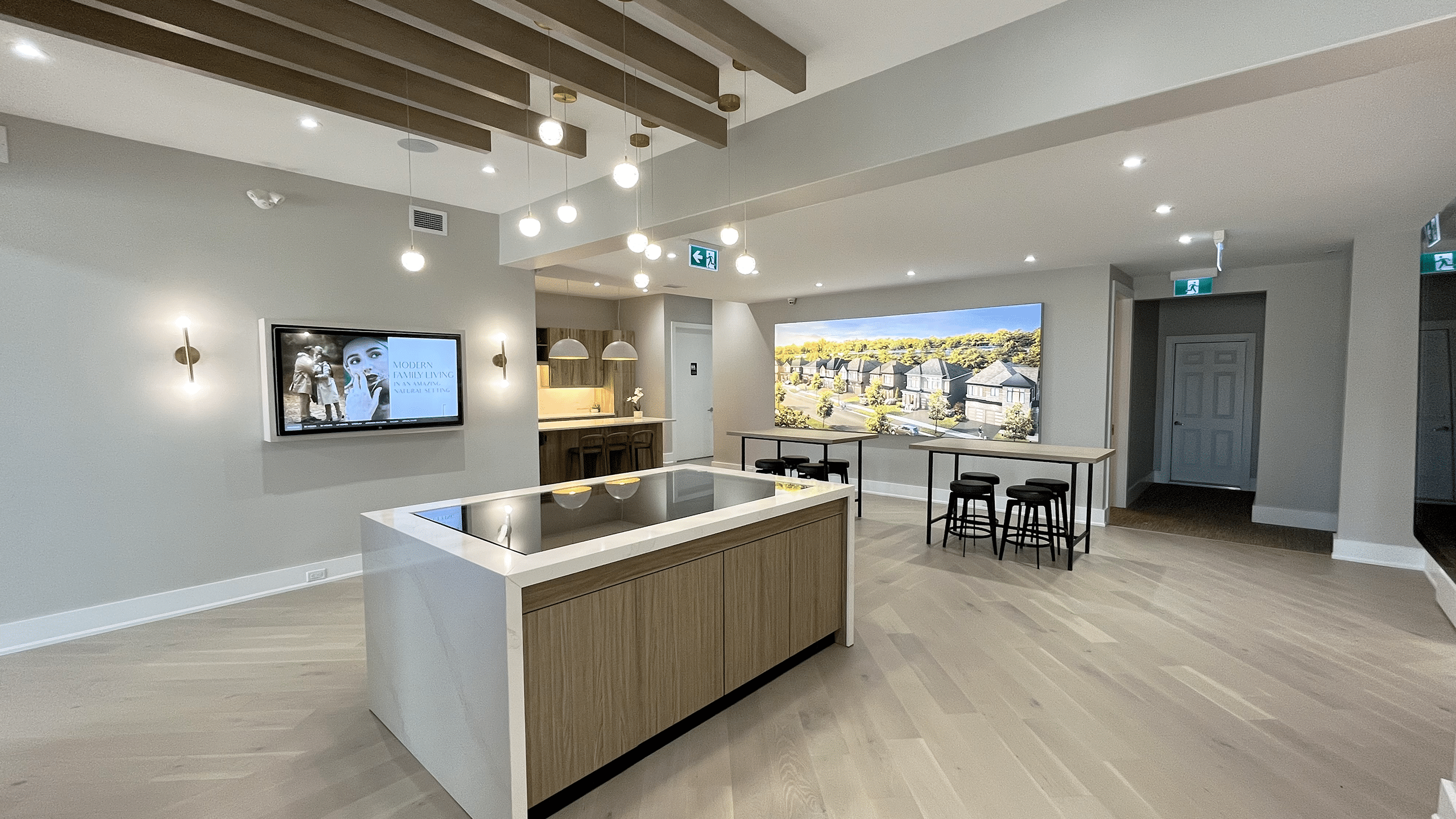 At our Hamilton New Home Centre, we worked with designer Crystal Collinson to conceptualize a clean, modern interior that would allow our Sales Team to welcome homebuyers seeking to purchase at many different communities simultaneously and allow our Design Studio Team to ensure Cachet’s finishes are presented in a way that would inspire purchasers to design the home of their dreams.