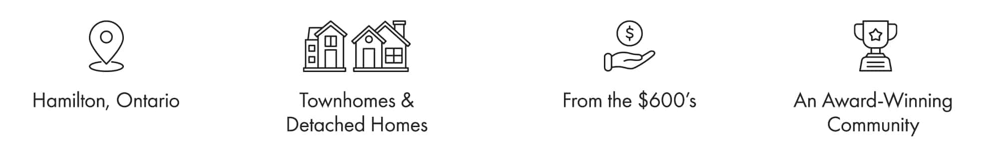 Just outside of Hamilton, where the air is lighter and the grass is greener, is a new master-planned community called Cachet Binbrook. Surrounded by an abundance of forested parks, trails and waterways to explore, Cachet Binbrook offers a collection of thoughtfully-designed towns and detached homes with sustainable, sophisticated features. Experience the best of modern family living in close proximity to excellent schools, convenient shopping, worldly dining and cultural attractions. Living at Cachet Binbrook, a sustainable lifestyle comes naturally.